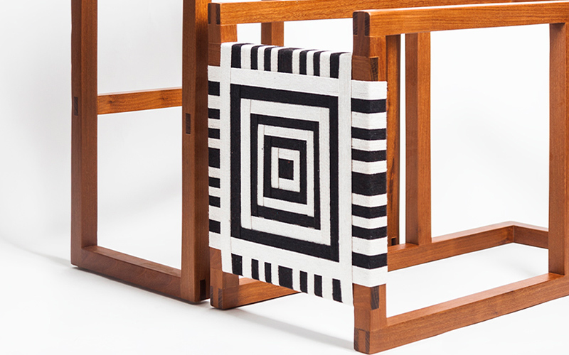 Madera Cortez | Tejido a Mano De Algodón | Diseño Cuadrado 48 w x 35 l x 75 ht cm | Por Encargo